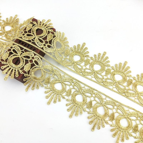 卸売高品質6cmゴールドレース水溶性刺繍レース高級サリードレス衣服装飾用