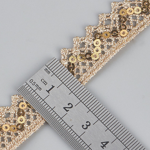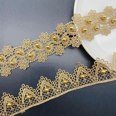 新着ゴールド2.5cmポリエステル刺繍レーストリムビーズ付き衣類装飾カーテンDIYクラフトアクセサリーDZ09/11