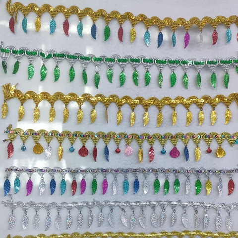 縫製アフリカレーストリムゴールドトライアングル金属トリミングパーティーシェルリーフラウンドシーケンスレーストリムドレス用