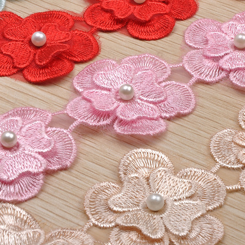 Bán Buôn 45Mm Polyester Sang Trọng Đa Màu Sắc Ngọc Trai Cô Dâu May Vải Tuyn Ren Hoa 3D Đính Cườm Ren Trim Cho Quần Áo Phụ Kiện