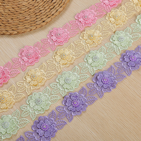 Bán Buôn Polyester Hoa Quần Áo Phụ Kiện Mới Đến Thêu Đầy Màu Sắc Ren Handmade Tự Làm Biên Giới Ren Với Rhinestone