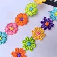 Bán buôn 5cm Polyester 3D hoa Organza ren thêu đầy màu sắc hoa Chantilly ren TRIM cho trang phục quần áo trang trí