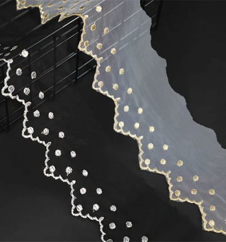 Toptan yüksek kaliteli olmayan sıkı yumuşak şeffaf Polyester örgü kumaş işlemeli dantel Trim ile konfeksiyon üretimi için